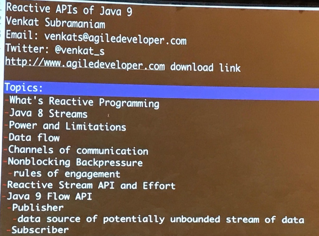 Reactive programming is no longer an esoteric idea. Many libraries and tools have started providing excellent support for this programming style–so much so that Java 9 has embraced this idea by including it in the specification. This presentation takes a dive into what reactive programming looks like from the Java specification point of view. You’ll witness the creation of a small working example that illustrates the API and learn how to make use of it.